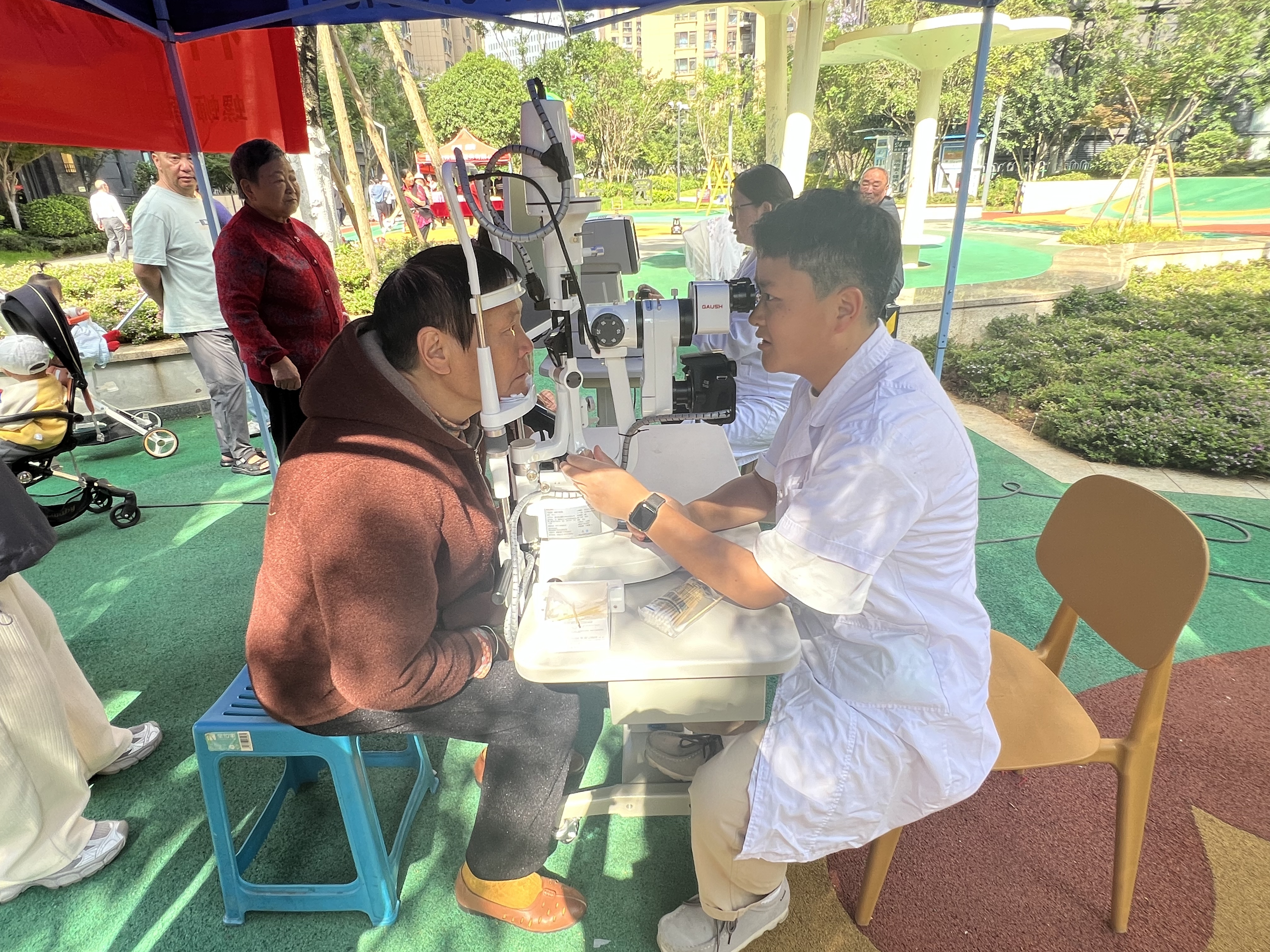 活動現(xiàn)場,前來咨詢和檢查的居民絡(luò)繹不絕。市一院眼科專家憑借專業(yè)的設(shè)備和豐富的經(jīng)驗,仔細(xì)地為每一位居民進(jìn)行視力檢測、眼壓測量、眼底篩查等項目,針對居民們提出的各類眼部問題,給出專業(yè)且細(xì)致的解答與建議。眼耳鼻喉科、綜合內(nèi)科、康復(fù)醫(yī)學(xué)科的醫(yī)生們也耐心詢問居民的身體狀況,為他們提供疾病診斷、康復(fù)指導(dǎo)等服務(wù)。體檢科的工作人員認(rèn)真為居民們進(jìn)行基礎(chǔ)身體指標(biāo)檢查,護(hù)理健康教育??菩〗M則在一旁發(fā)放精心準(zhǔn)備的愛眼護(hù)眼宣傳資料,并通過生動形象的講解,向居民普及科學(xué)用眼知識,內(nèi)容涵蓋如何預(yù)防近視、老花眼,常見眼病的早期癥狀及日常用眼習(xí)慣的科學(xué)養(yǎng)成等。
