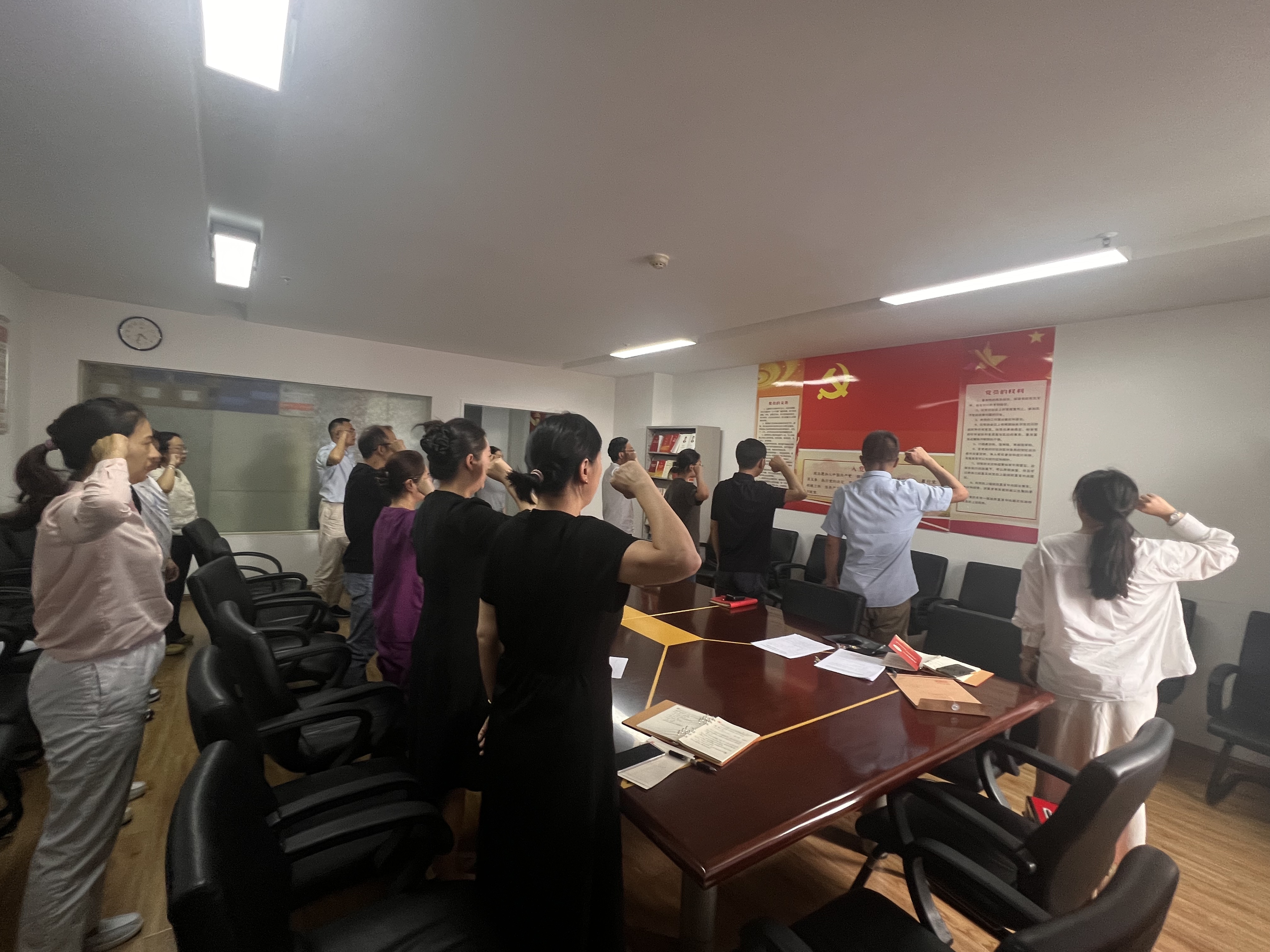 接著,主題黨日活動(dòng)在同一地點(diǎn)舉行。全體黨員重溫入黨誓詞后,學(xué)習(xí)了黨章黨規(guī)、習(xí)近平總書記關(guān)于黨的建設(shè)的重要思想等內(nèi)容,還學(xué)習(xí)了安全生產(chǎn)及公務(wù)接待等政策法規(guī)和典型案例,觀看了安全生產(chǎn)月宣傳視頻。支部為郭利生、聶靜等同志發(fā)放黨員政治生日賀卡,全體黨員足額及時(shí)繳納了6月份黨費(fèi),并通報(bào)了5月份黨費(fèi)收繳情況。此次主題黨日活動(dòng),通過多種形式的學(xué)習(xí)和實(shí)踐,強(qiáng)化了黨員的安全責(zé)任意識(shí)與法律素養(yǎng),豐富了組織生活形式,增強(qiáng)了黨支部的凝聚力和戰(zhàn)斗力。